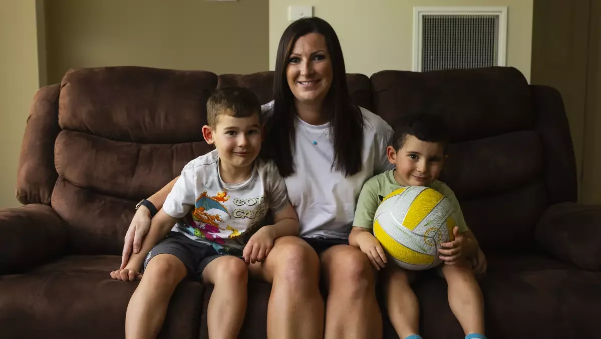 Tasha Tatton has recently moved to Australia from England and is already getting involved in local netball. Pictured with her sons Oscar Tatton, 6, (left) and Isaac Tatton, 3, (right). Picture by Ash Smith